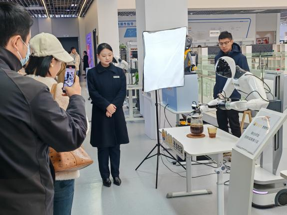 走进湖北人形机器人创新中心,师生党员在科技场景的沉浸式体验中,上了一堂生动的“实践党课”。一个由“劳动者”、“荆楚”、“天问”、“楚宝”等10款人形机器人组成的“楚才”方阵映入眼帘,它们各怀绝技,生动诠释着新质生产力的丰富内涵。从能精准拉花的咖啡师,到可替代人工进行变电站高危巡检的“钢铁战士”,这些机器人都是扎根于湖北、从设计到核心部件都闪耀着自主创新光芒的“中国智造”。“看到这些机器人不仅在生活中提供便利,更在关键领域守护安全、支撑发展,我深深感到科技强国不再是一句口号,而是一种可触摸、可实现的使命。”2023级学生党员孙松林在参观后感慨道。